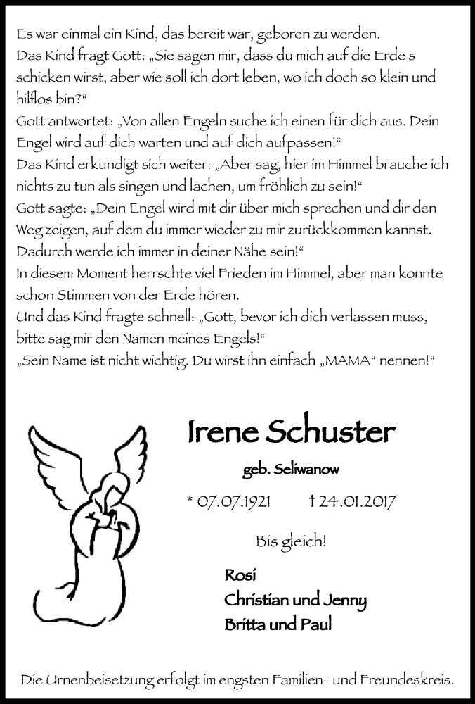 Pflanzen Sie einen Gedenkbaum für Irene Schuster