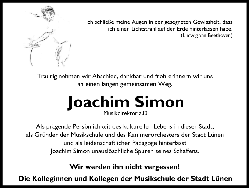 Hier finden Sie alle Traueranzeigen aus der Zeitung, die bisher für Joachim Simon erschienen sind. Weitere Traueranzeigen, die in der Zeitung erscheinen, werden hier ebenfalls aufgelistet