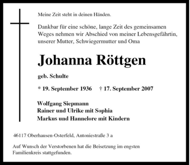 Pflanzen Sie einen Gedenkbaum für Johanna Röttgen