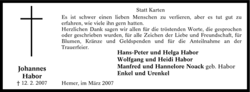 Hier finden Sie alle Traueranzeigen aus der Zeitung, die bisher für Johannes Habor erschienen sind. Weitere Traueranzeigen, die in der Zeitung erscheinen, werden hier ebenfalls aufgelistet