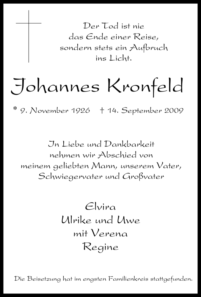 Pflanzen Sie einen Gedenkbaum für Johannes Kronfeld
