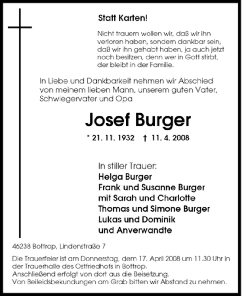 Pflanzen Sie einen Gedenkbaum für Josef Burger