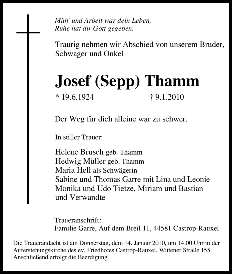 Pflanzen Sie einen Gedenkbaum für Josef Thamm
