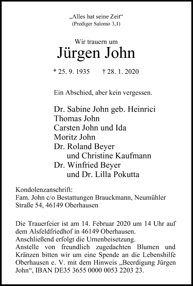 Pflanzen Sie einen Gedenkbaum für Jürgen John