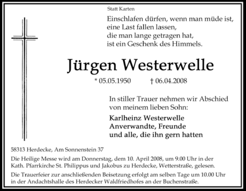 Pflanzen Sie einen Gedenkbaum für Jürgen Westerwelle