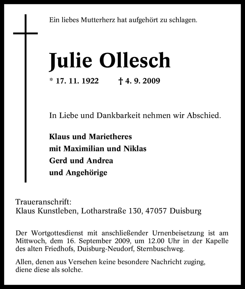 Pflanzen Sie einen Gedenkbaum für Julie Ollesch