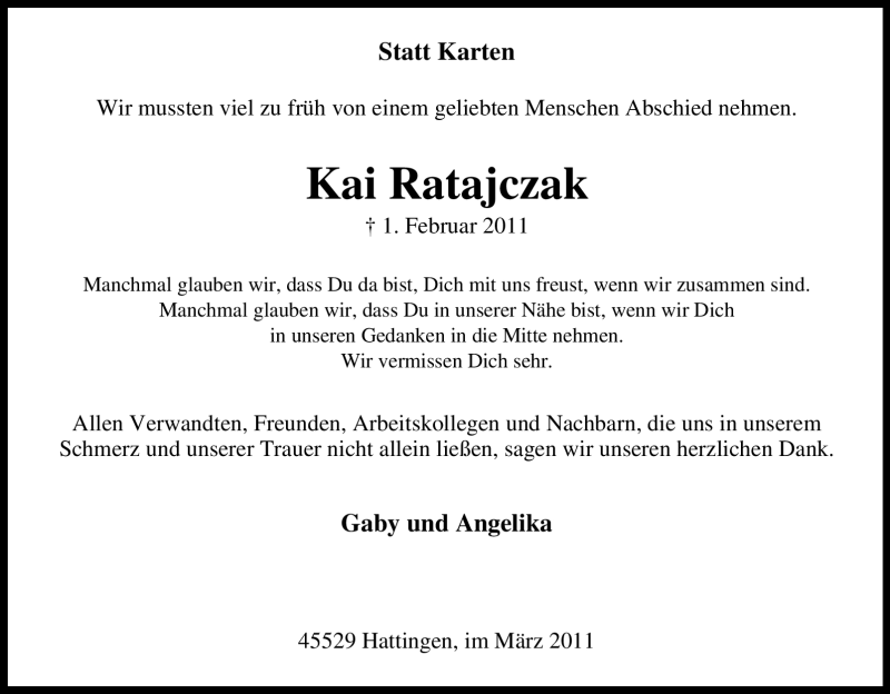 Lieber Kai! Wir hoffen das es dir da wo du jetzt bist, dir gut geht. Ruhe in Frieden.