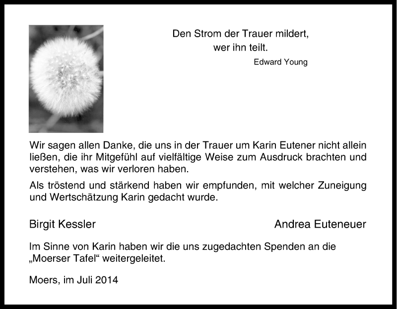 Pflanzen Sie einen Gedenkbaum für Karin Euteneuer