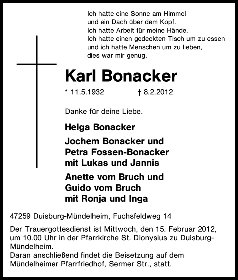 Pflanzen Sie einen Gedenkbaum für Karl Bonacker
