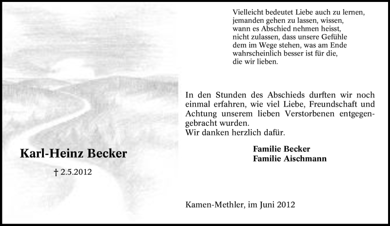 Hier finden Sie alle Traueranzeigen aus der Zeitung, die bisher für Karl-Heinz Becker erschienen sind. Weitere Traueranzeigen, die in der Zeitung erscheinen, werden hier ebenfalls aufgelistet