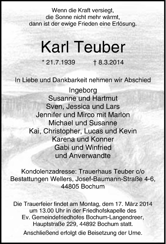 Pflanzen Sie einen Gedenkbaum für Karl Teuber