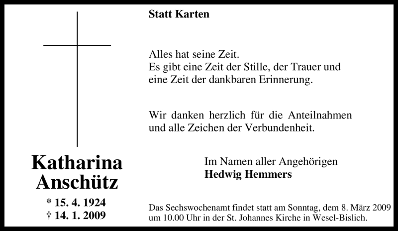 Pflanzen Sie einen Gedenkbaum für Katharina Anschütz