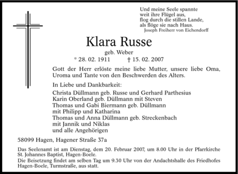 Pflanzen Sie einen Gedenkbaum für Klara Russe