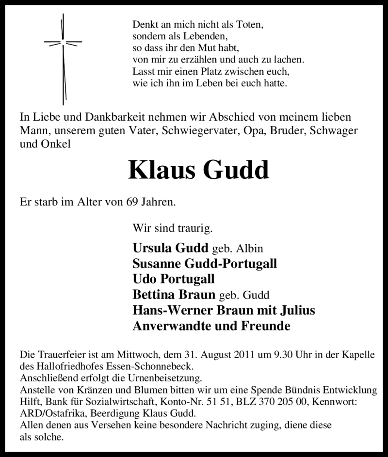 Pflanzen Sie einen Gedenkbaum für Klaus Gudd