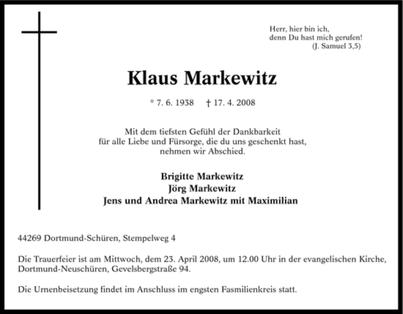 Pflanzen Sie einen Gedenkbaum für Klaus Markewitz