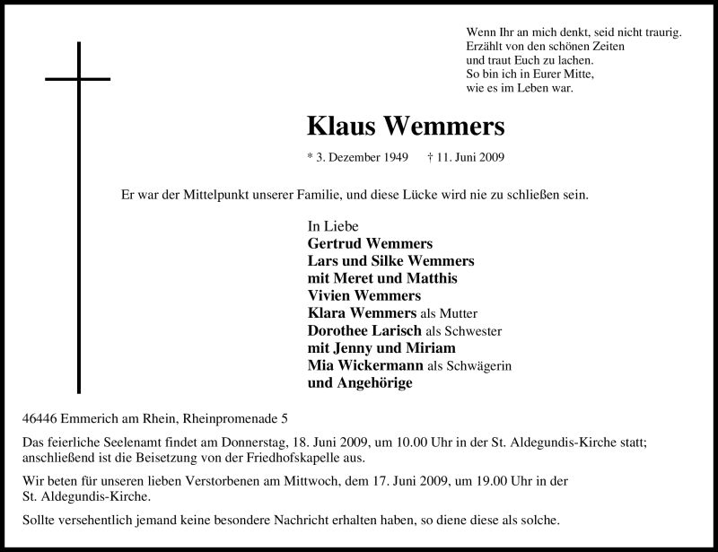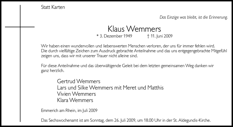 Pflanzen Sie einen Gedenkbaum für Klaus Wemmers
