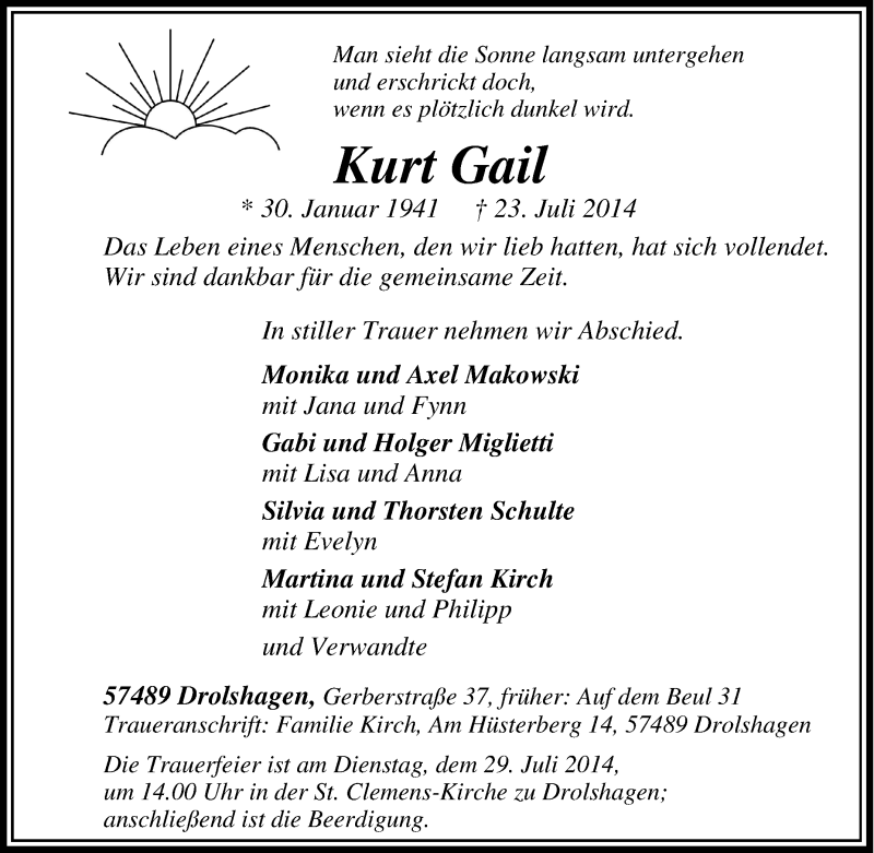 Pflanzen Sie einen Gedenkbaum für Kurt Gail