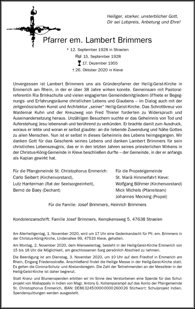 Hier finden Sie alle Traueranzeigen aus der Zeitung, die bisher für Lambert Brimmers erschienen sind. Weitere Traueranzeigen, die in der Zeitung erscheinen, werden hier ebenfalls aufgelistet