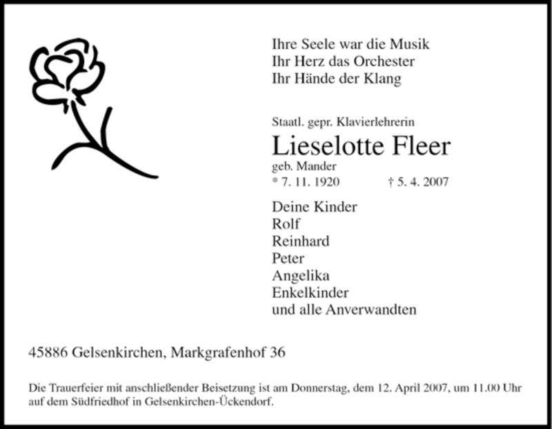 Pflanzen Sie einen Gedenkbaum für Lieselotte Fleer
