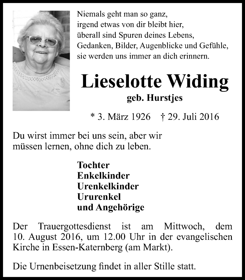 Liebes Oma Lieselotte Widing