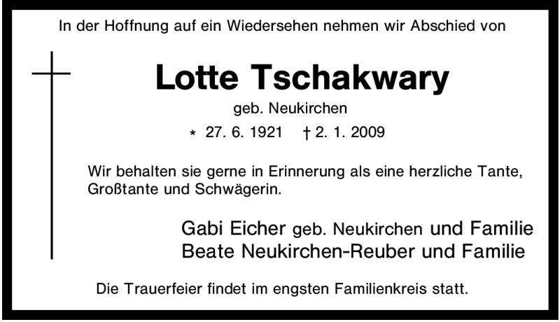 Pflanzen Sie einen Gedenkbaum für Lotte Tschakwary