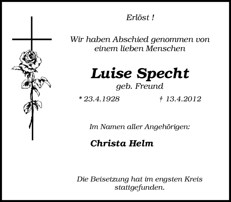 Pflanzen Sie einen Gedenkbaum für Luise Specht
