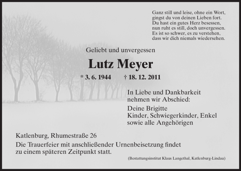 Pflanzen Sie einen Gedenkbaum für Lutz Meyer