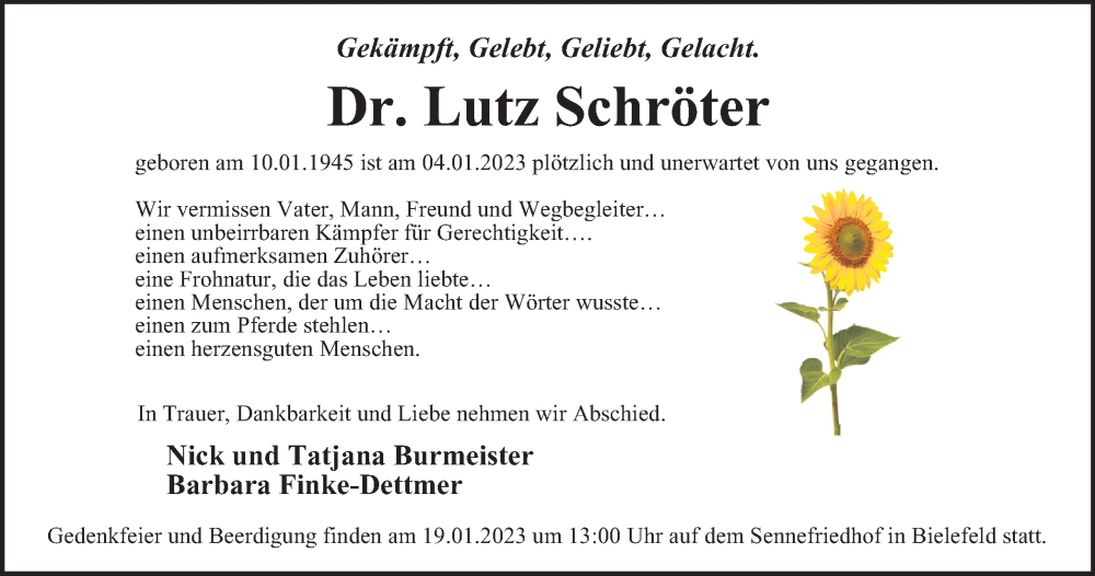 Pflanzen Sie einen Gedenkbaum für Lutz Schröter