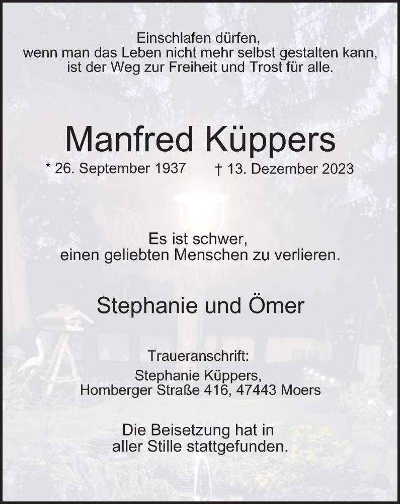 Pflanzen Sie einen Gedenkbaum für Manfred Küppers
