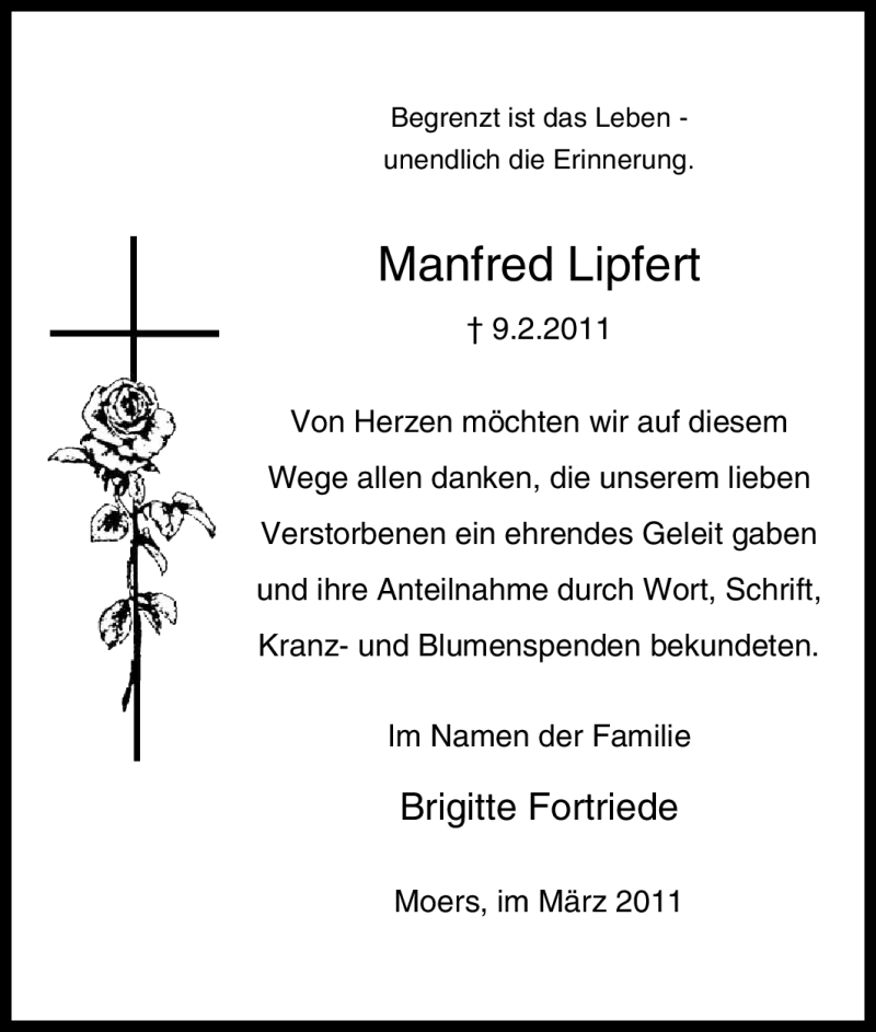 Pflanzen Sie einen Gedenkbaum für Manfred Lipfert