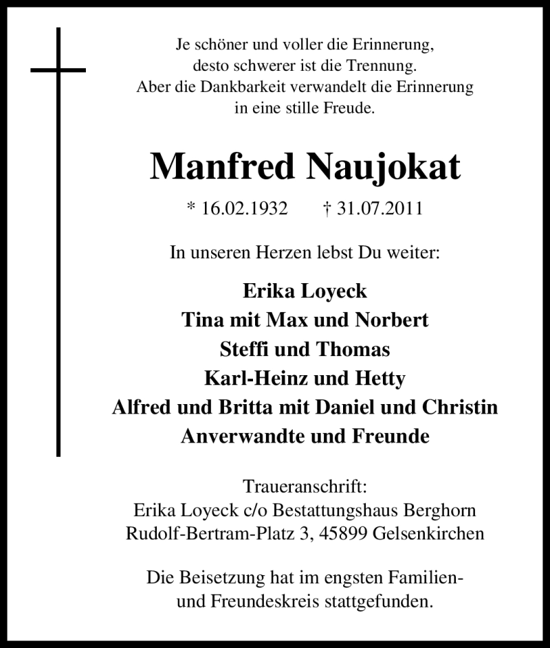 Pflanzen Sie einen Gedenkbaum für Manfred Naujokat
