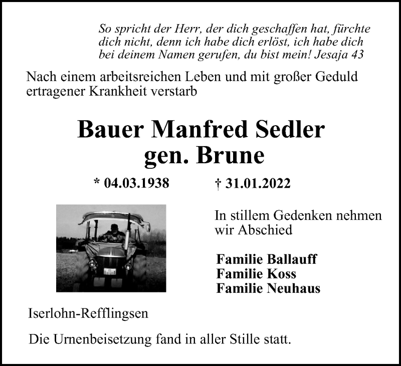 Pflanzen Sie einen Gedenkbaum für Manfred Sedler
