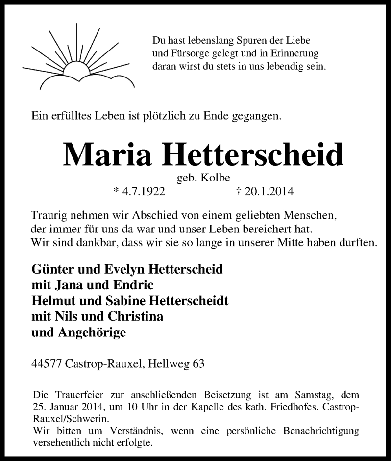 Pflanzen Sie einen Gedenkbaum für Maria Hetterscheid