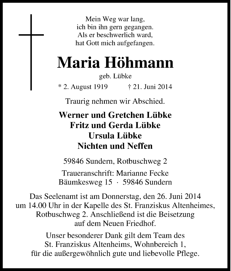 Pflanzen Sie einen Gedenkbaum für Maria Höhmann