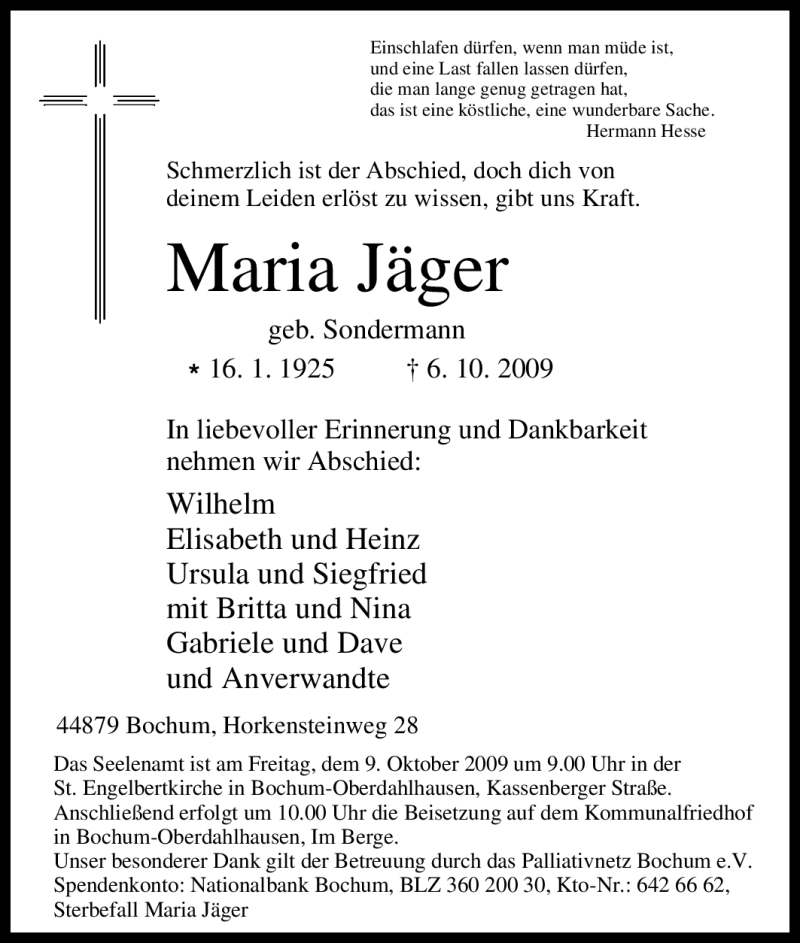 Pflanzen Sie einen Gedenkbaum für Maria Jäger