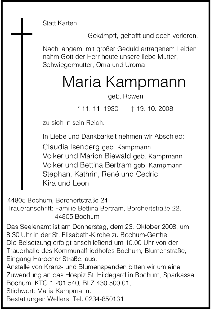 Pflanzen Sie einen Gedenkbaum für Maria Kampmann