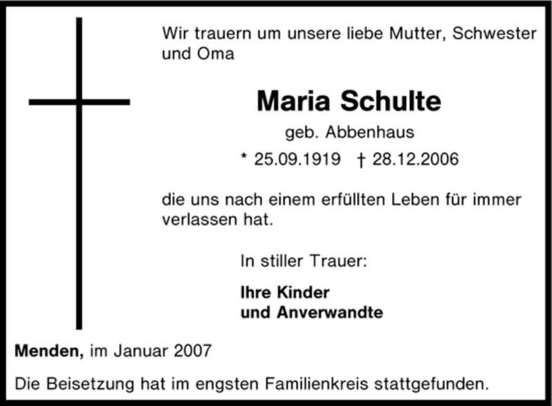 Pflanzen Sie einen Gedenkbaum für Maria Schulte