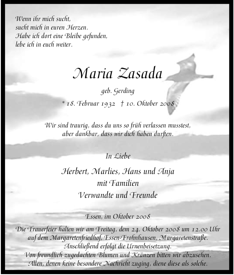 Pflanzen Sie einen Gedenkbaum für Maria Zasada