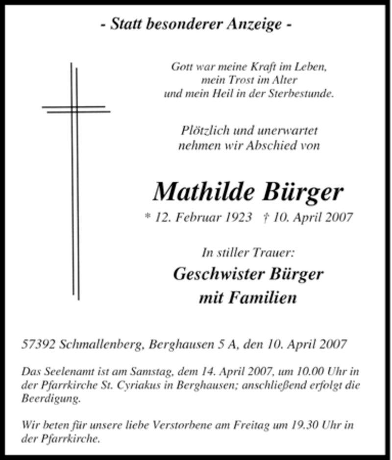 Pflanzen Sie einen Gedenkbaum für Mathilde Bürger