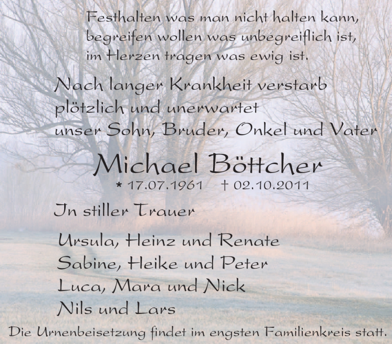 Pflanzen Sie einen Gedenkbaum für Michael Böttcher