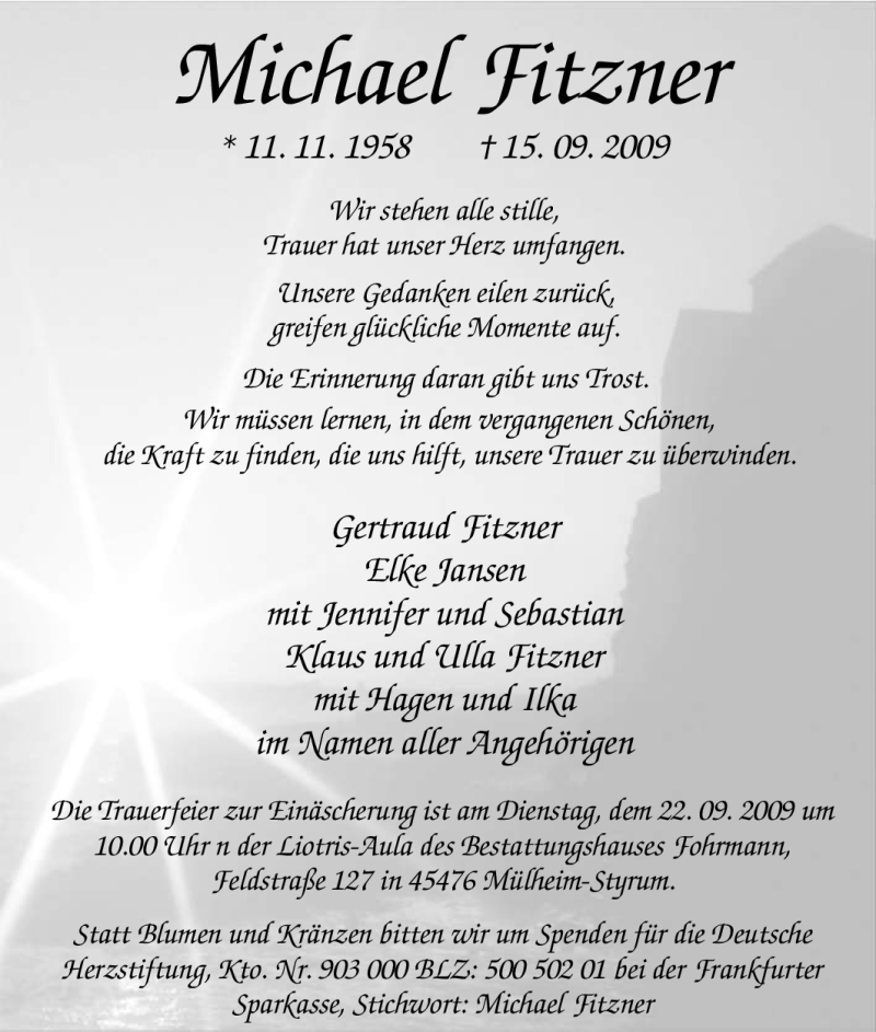 Pflanzen Sie einen Gedenkbaum für Michael Fitzner
