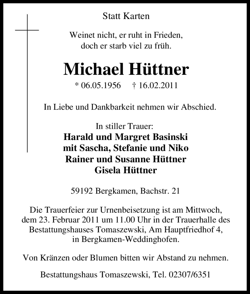 Pflanzen Sie einen Gedenkbaum für Michael Hüttner