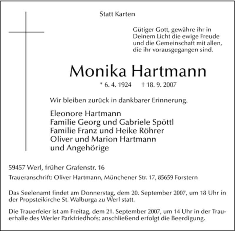 Pflanzen Sie einen Gedenkbaum für Monika Hartmann