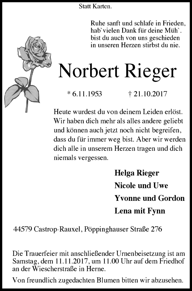 Pflanzen Sie einen Gedenkbaum für Norbert Rieger
