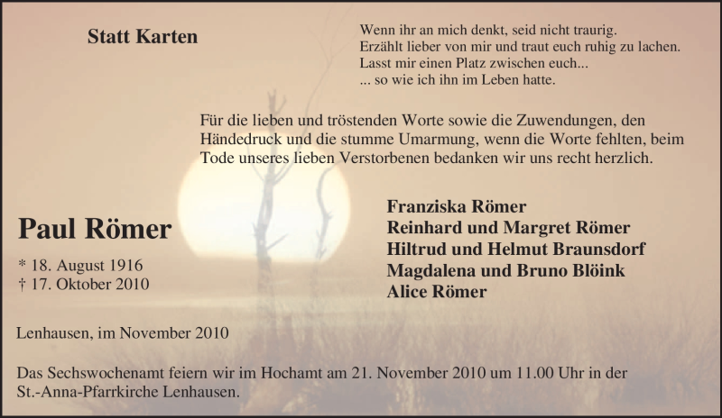 Pflanzen Sie einen Gedenkbaum für Paul Römer