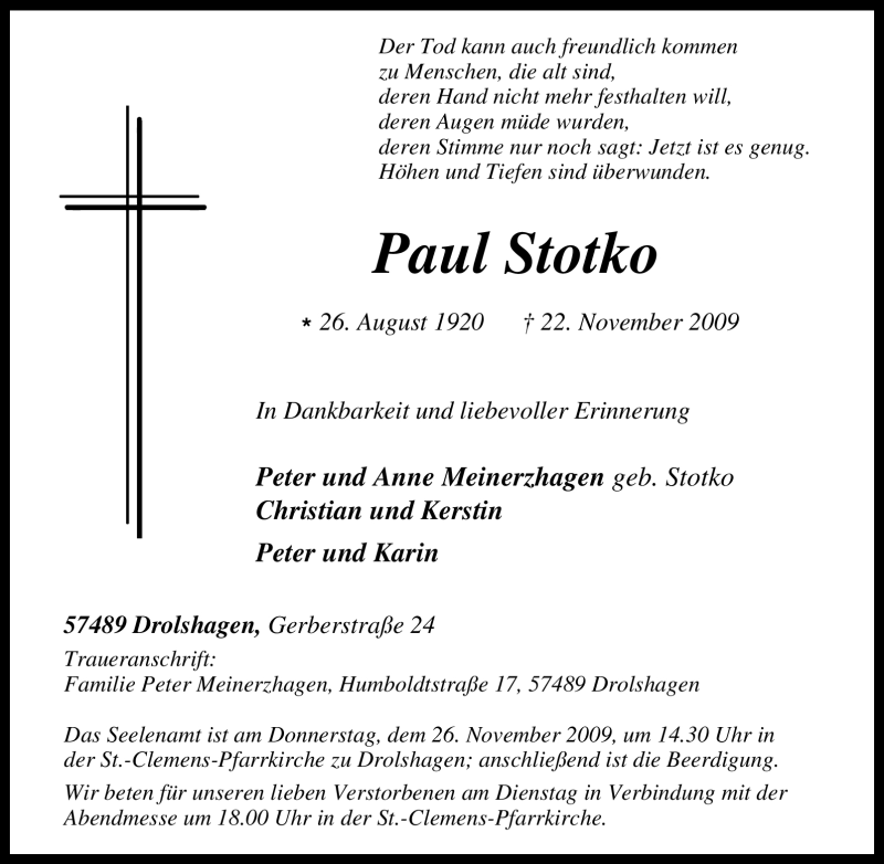 Hier finden Sie alle Traueranzeigen aus der Zeitung, die bisher für Paul Stotko erschienen sind. Weitere Traueranzeigen, die in der Zeitung erscheinen, werden hier ebenfalls aufgelistet