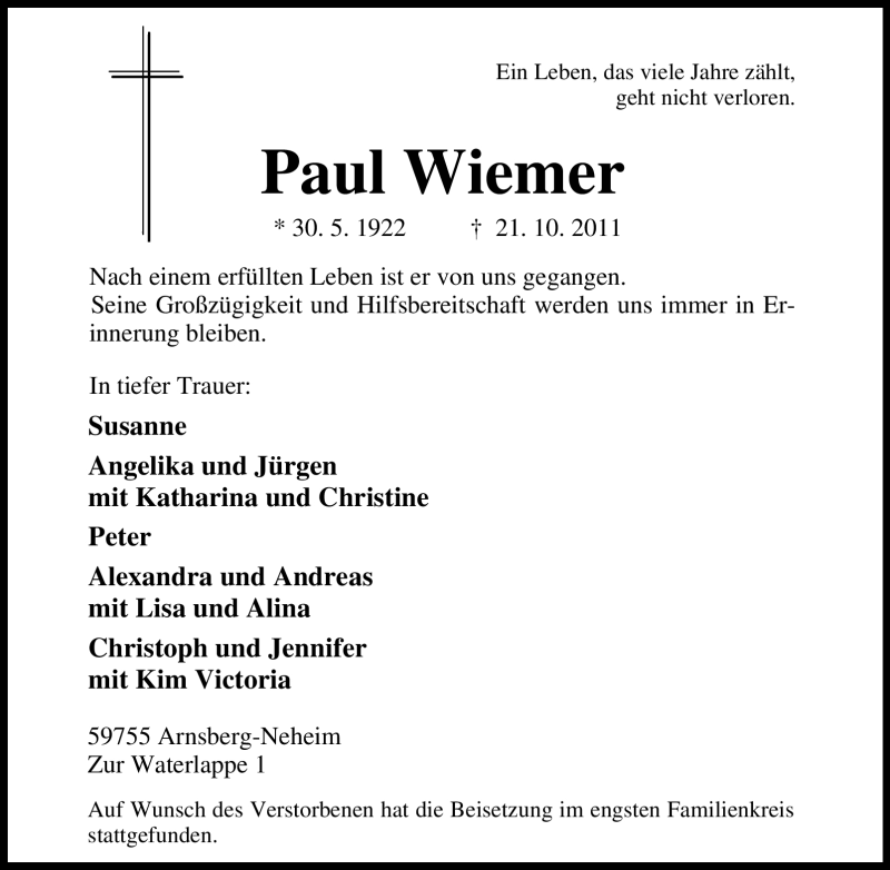 Pflanzen Sie einen Gedenkbaum für Paul Wiemer
