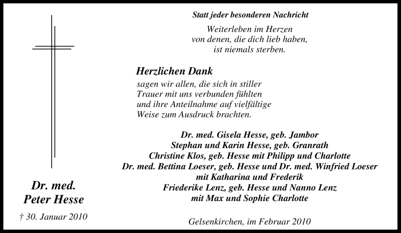 Pflanzen Sie einen Gedenkbaum für Peter Hesse