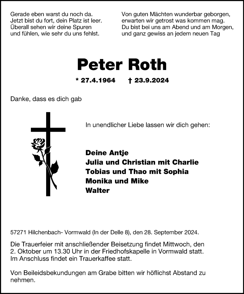 Pflanzen Sie einen Gedenkbaum für Peter Roth