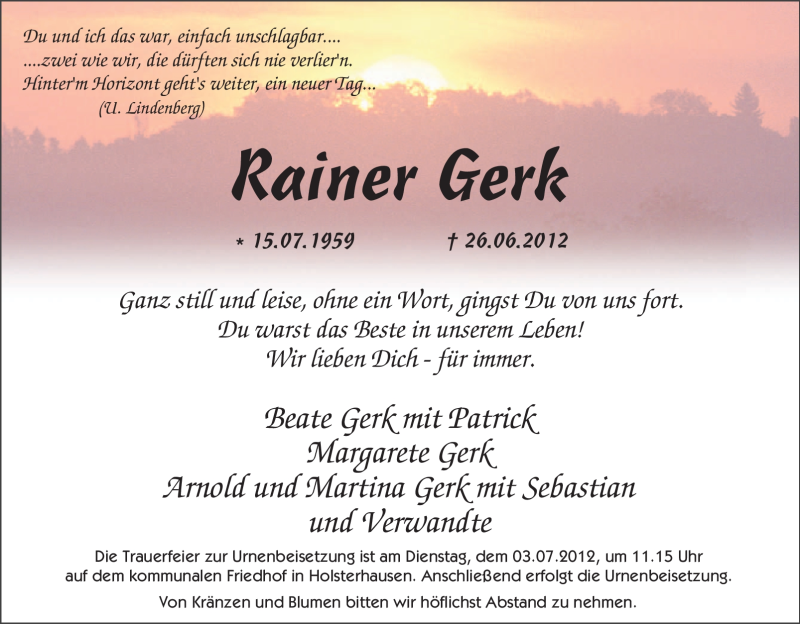 Pflanzen Sie einen Gedenkbaum für Rainer Gerk
